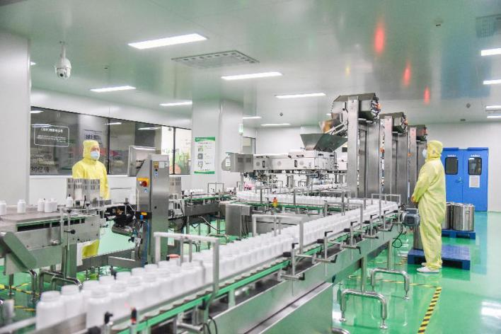 據(jù)了解,園區(qū)的照明、制冷,生產(chǎn)用電、用水等優(yōu)先依靠自建的2.3兆瓦屋頂光伏電站。每年園區(qū)自發(fā)電量為315萬(wàn)度,可減少煤炭消耗2003噸,相當(dāng)于減少二氧化碳排放5248噸。2024年,園區(qū)的二氧化碳排放強(qiáng)度為0.03噸二氧化碳當(dāng)量/萬(wàn)元,遠(yuǎn)低于全球平均水平。 在降低能耗上下狠功夫的同時(shí),園區(qū)在推動(dòng)資源循環(huán)利用上頻出實(shí)招,一方面委托具備資質(zhì)的物資回收公司將生產(chǎn)過(guò)程原輔料包裝材料全部回收,使工業(yè)固體廢物綜合利用率達(dá)到100%,另一方面將生產(chǎn)過(guò)程中產(chǎn)生的廢水收集到廠區(qū)污水站深度處理后,用于灌溉園區(qū)的花草樹(shù)木,讓資源在循環(huán)利用中發(fā)揮最大效益。 當(dāng)前,園區(qū)已經(jīng)全面通過(guò)ISO9001、ISO14001、ISO22000、ISO45001、ISO50001國(guó)際體系認(rèn)證,在食品安全、產(chǎn)品質(zhì)量、環(huán)境保護(hù)等領(lǐng)域均達(dá)到國(guó)內(nèi)領(lǐng)先水平。 GMP車間里藏著“綠色密碼” 洗手、消毒、換衣、除塵……每一位進(jìn)入園區(qū)生產(chǎn)車間的人員都要經(jīng)過(guò)這一系列繁瑣的程序。反光的地面、不著一絲污跡的角落、自動(dòng)化運(yùn)轉(zhuǎn)的精密儀器、燈火通明的車間,這里看上去更像是一間偌大的、枕戈待旦的手術(shù)室。