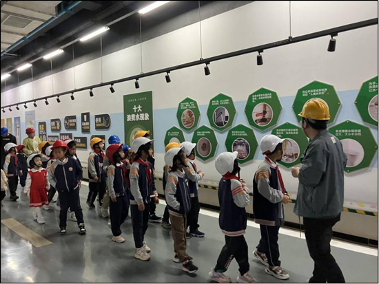 全地埋設(shè)計不僅將污水處理構(gòu)筑物全部隱藏于地下,更通過密閉空間對設(shè)備噪聲進行收集處理,對臭氣實施100%集中凈化,徹底打破了“污水處理廠=臟臭源”的固有認知。 更令人欣喜的是,這座綠色工廠已成為傳播生態(tài)文明理念的重要載體。作為合肥市生態(tài)環(huán)境教育基地,胡大郢凈水廠每年舉辦超過20場“節(jié)水課堂進校園”活動,把“一滴污水的低碳之旅”故事送進十余所中小學(xué)。孩子們通過樂高模型模擬污水處理流程,在寓教于樂中種下綠色發(fā)展的種子。 在胡大郢凈水廠“國企開放日”活動中,孩子們戴著安全帽穿越地下處理車間,直觀見證污水處理的“碳足跡消弭”過程?!拔鬯兦逅穆贸蹋彩翘紲p排的旅程。”稚嫩的聲音里,飽含著對未來綠色生活的向往。 從地下到地上,從治理到教育,胡大郢凈水廠以創(chuàng)新的立體布局、先進的環(huán)保技術(shù)、生動的科普實踐,走出了一條生態(tài)優(yōu)先、綠色發(fā)展的新路徑。它不僅是環(huán)巢湖生態(tài)保護的一張“活名片”,更是新時代城市與自然和諧共生的生動注腳。在這片曾經(jīng)可能被視為“邊緣地帶”的土地上,正在上演一場關(guān)于綠色轉(zhuǎn)型、空間重構(gòu)與生態(tài)文明的時代敘事。
