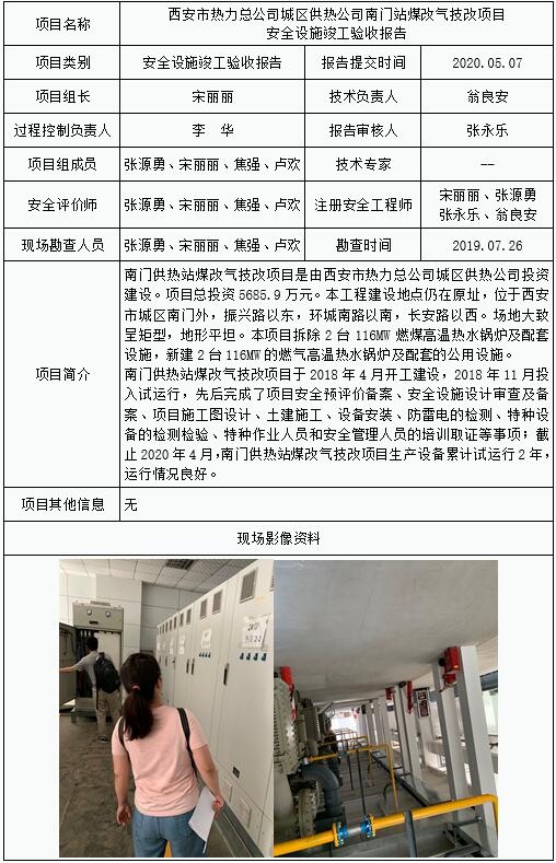 2020.05.07西安市熱力總公司城區(qū)供熱公司南門站煤改氣技改項(xiàng)目安全設(shè)施竣工驗(yàn)收?qǐng)?bào)告