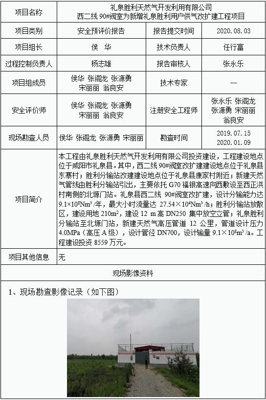 2020.08.03禮泉勝利天然氣開發(fā)利用有限公司西二線90#閥室為新增禮泉勝利用戶供氣改擴(kuò)建工程項(xiàng)目安全評價(jià)報(bào)告