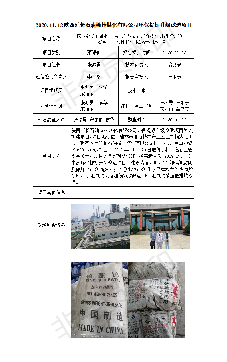 2020.11.12陜西延長(zhǎng)石油榆林煤化有限公司環(huán)保提標(biāo)升級(jí)改造項(xiàng)目