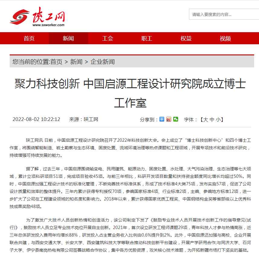 陜工網(wǎng) | 聚力科技創(chuàng)新 中國啟源工程設(shè)計(jì)研究院成立博士工作室 |