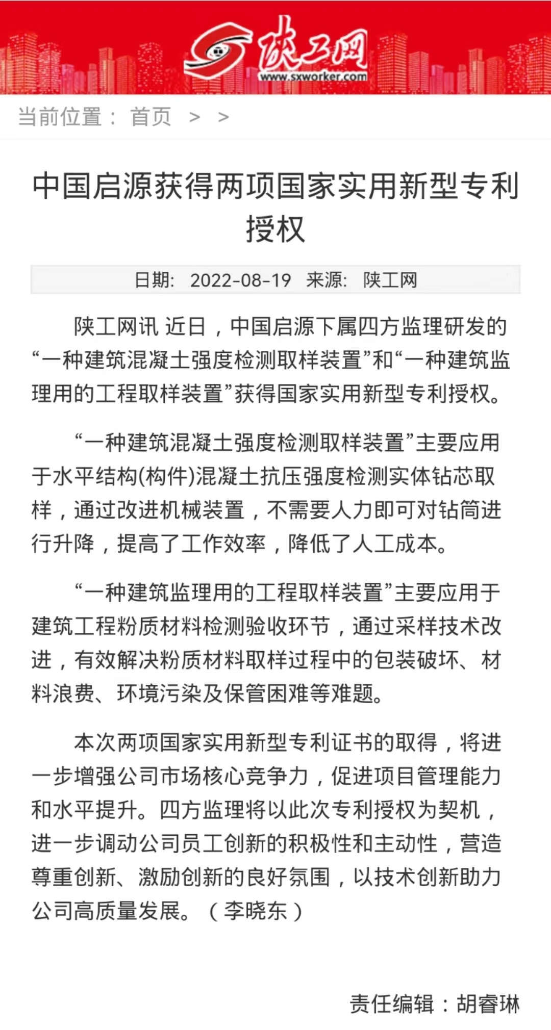 陜西工人網(wǎng)丨中國啟源獲得兩項(xiàng)國家實(shí)用新型專利授權(quán) |
