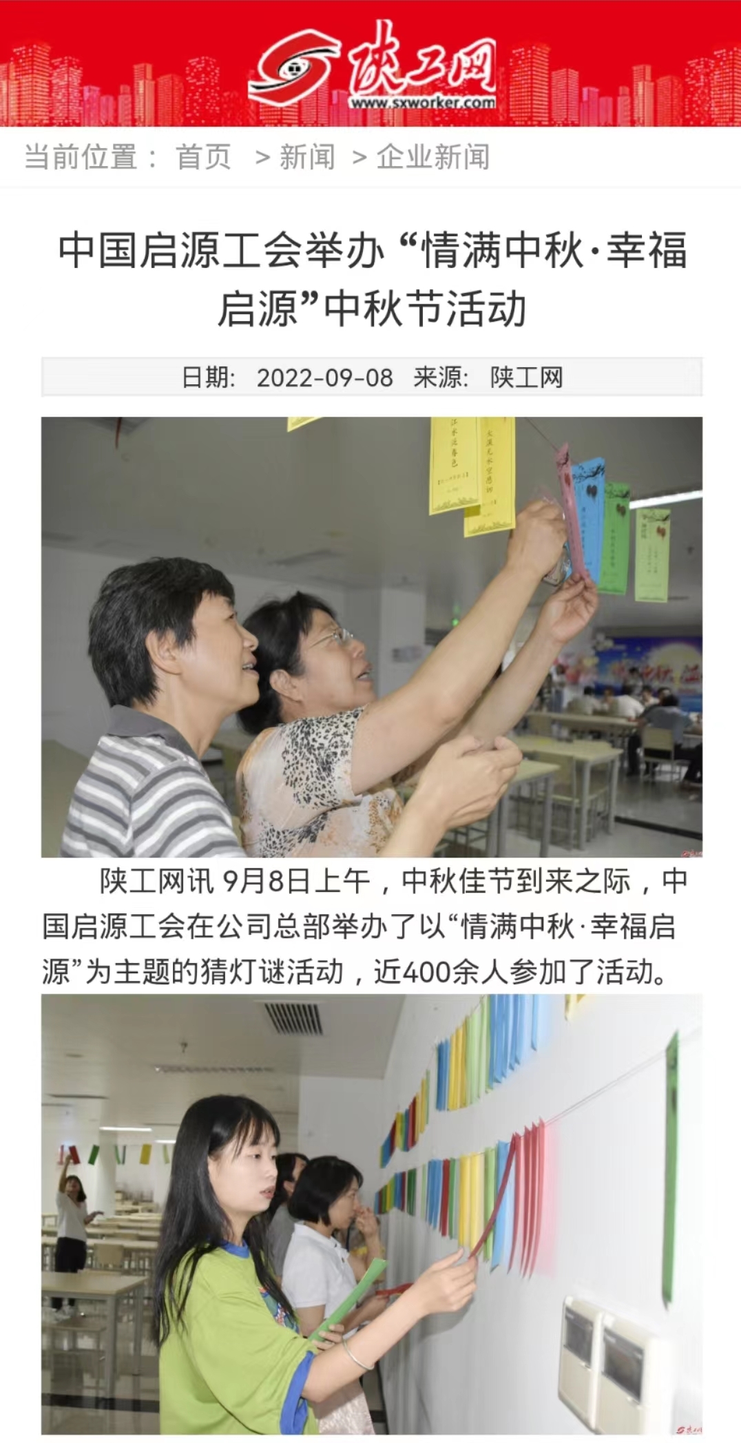 ? ? ? ? 9月8日上午,中秋佳節(jié)到來之際,中國啟源工會在公司總部舉辦了以“情滿中秋·幸福啟源”為主題的猜燈謎活動,近400余人參加了活動。