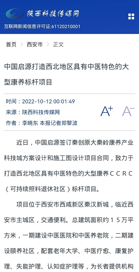 陜西科技傳媒網丨中國啟源打造西北地區(qū)具有中醫(yī)特色的大型康養(yǎng)標桿項目 |