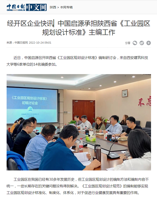 中國(guó)日?qǐng)?bào)網(wǎng)丨中國(guó)啟源承擔(dān)陜西省《工業(yè)園區(qū)規(guī)劃設(shè)計(jì)標(biāo)準(zhǔn)》主編工作 |