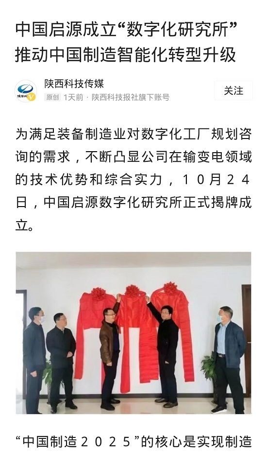 陜西科技傳媒網(wǎng)丨中國啟源成立“數(shù)字化研究所”推動中國制造智能化轉(zhuǎn)型升級 |