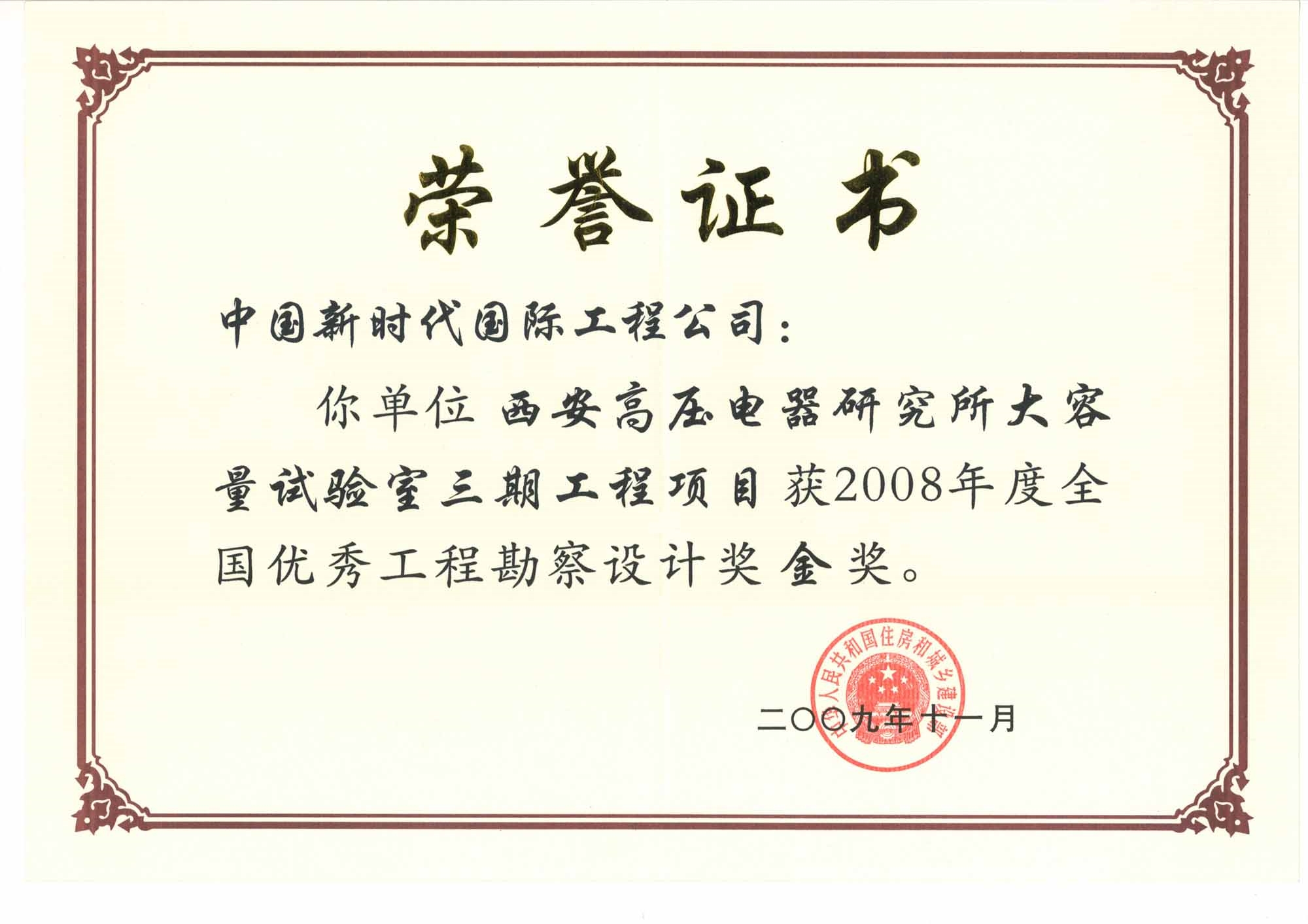 獎(jiǎng)項(xiàng)種類(lèi):全國(guó)優(yōu)秀工程勘察設(shè)計(jì)獎(jiǎng)
