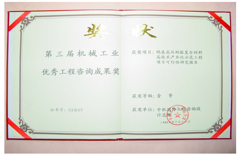 獎(jiǎng)項(xiàng)種類:機(jī)械工業(yè)優(yōu)秀工程咨詢成果獎(jiǎng)