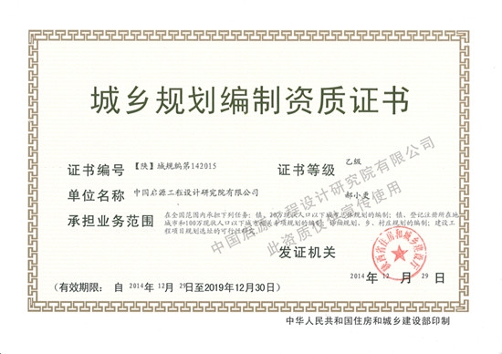 城市規(guī)劃編制資質(zhì)證書(shū)(乙級(jí)) |