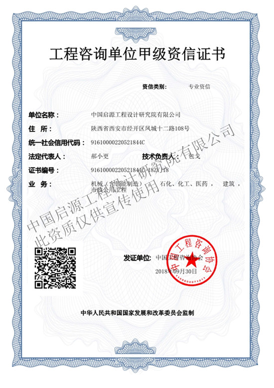 工程咨詢單位甲級(jí)資信證書(shū)
