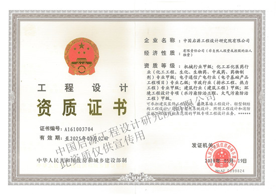 工程設(shè)計(jì)證書(shū)(甲級(jí))