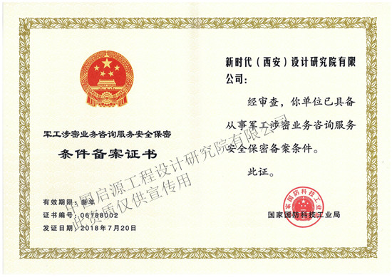 軍工涉密業(yè)務(wù)咨詢服務(wù)安全保密條件備案證書(shū)