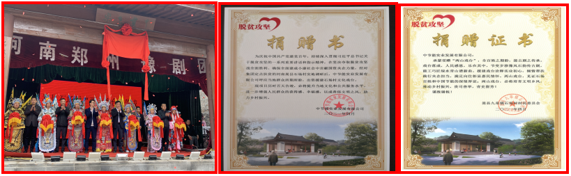 全體團員青年一致表示,要把黨的歷史學習好、傳承好、發(fā)揚好、領會好,把學黨史、悟思想、辦實事、開新局貫穿全過程,努力做到學史明理,強化理論武裝;學史增信,堅定理想信念;學史崇德,賡續(xù)精神血脈;學史力行,做到知行合一。 真心為民服務 用情用力幫扶在彰顯央企擔當中助力“靠山吼”發(fā)揚光大 中節(jié)能實業(yè)黨委 4月23日,位于豫西深山的嵩縣石場村李莊鑼鼓喧天、鞭炮齊鳴、人聲鼎沸,中節(jié)能實業(yè)捐建的文化戲臺正式落成交付。大戲連演了三天,十里八村的鄉(xiāng)民走路趕到村子看戲。“終于盼到這一天了,這下我們的靠山吼(也稱靠山簧,豫劇的一種)又可以唱起來啦!感謝共產黨,感謝中國節(jié)能!”村民王漢強眼睛笑成一條縫,掩飾不住內心的喜悅。