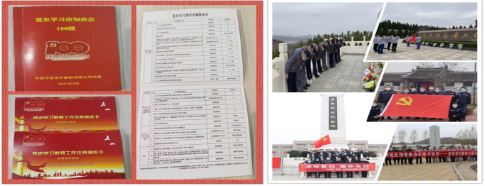 中國環(huán)保黨委深入貫徹落實集團公司黨委部署要求,組織各基層黨組織積極做好再部署、再動員,采取多種形式,掀起學(xué)習(xí)熱潮,高標(biāo)準(zhǔn)推進黨史學(xué)習(xí)教育落實落地。一是把規(guī)定動作做實。下屬棲霞公司黨支部通過開展“四個一”系列活動,列明9項規(guī)定動作,推動黨史學(xué)習(xí)教育走深走實。淶水公司黨支部制定“一月一專題”學(xué)習(xí)計劃表,將12個研討專題逐月推進,滄州公司黨支部開展每日一讀、每周一課、每月一測的“1+1+1”黨史學(xué)習(xí)教育;萍鄉(xiāng)公司黨支部采取“參觀見學(xué)、領(lǐng)導(dǎo)帶學(xué)、視頻看學(xué)、網(wǎng)絡(luò)助學(xué)、結(jié)隊幫學(xué)”五學(xué)模式,抓好基層黨員黨史學(xué)習(xí)教育。二是把自選動作做活。保定公司黨支部推出每周紅色觀影、“黨史百年”詩詞朗誦、紅歌合唱等活動;山東公司黨支部依托當(dāng)?shù)丶t色教育資源,組織開展實踐教學(xué)活動,煙臺公司和潤達公司黨支部聯(lián)合開展“憶黨史、銘黨恩、促黨建”跟著視頻學(xué)黨史活動;合肥公司黨支部組織開展“學(xué)黨史勵初心 開奮斗新征程”黨史知識競賽,教育引導(dǎo)廣大黨員學(xué)透歷史、學(xué)深思想、學(xué)出成效。三是把各環(huán)節(jié)工作做精。公司黨委緊密結(jié)合方案要求,為領(lǐng)導(dǎo)班子成員和各基層黨組織“量身定制”《黨史學(xué)習(xí)教育工作任務(wù)落實卡》,以項目化、清單化、責(zé)任化的方式,既明確“規(guī)定動作”內(nèi)容,又為“自選動作”指明方向。同時編印《黨史學(xué)習(xí)應(yīng)知應(yīng)會100題》口袋手冊,以知識題庫的形式分享黨史知識,推動黨史學(xué)習(xí)教育精細化、規(guī)范化。